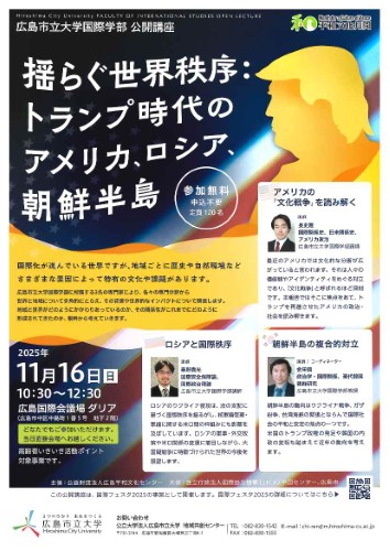 広島市立大学国際学部公開講座「揺らぐ世界秩序:トランプ時代のアメリカ、ロシア、朝鮮半島」