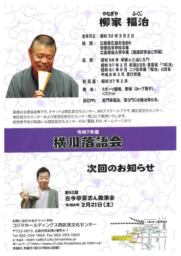 広島出身の落語家による 横川落語会 第51回 柳家福治 独演会