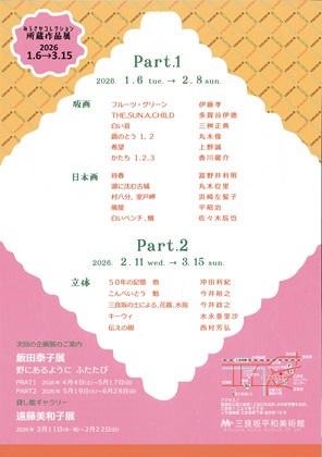 みらさかコレクション 所蔵作品展 【Part1 版画・日本画 2026.1.6 → 2.8】【Part2 立体 2026.2.11 → 3.15】