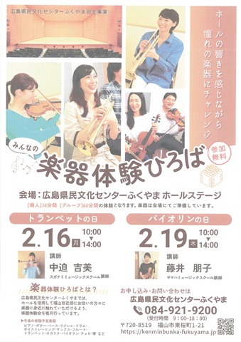 広島県民文化センターふくやま084−921−9200(受付時間9:00〜18:00) |